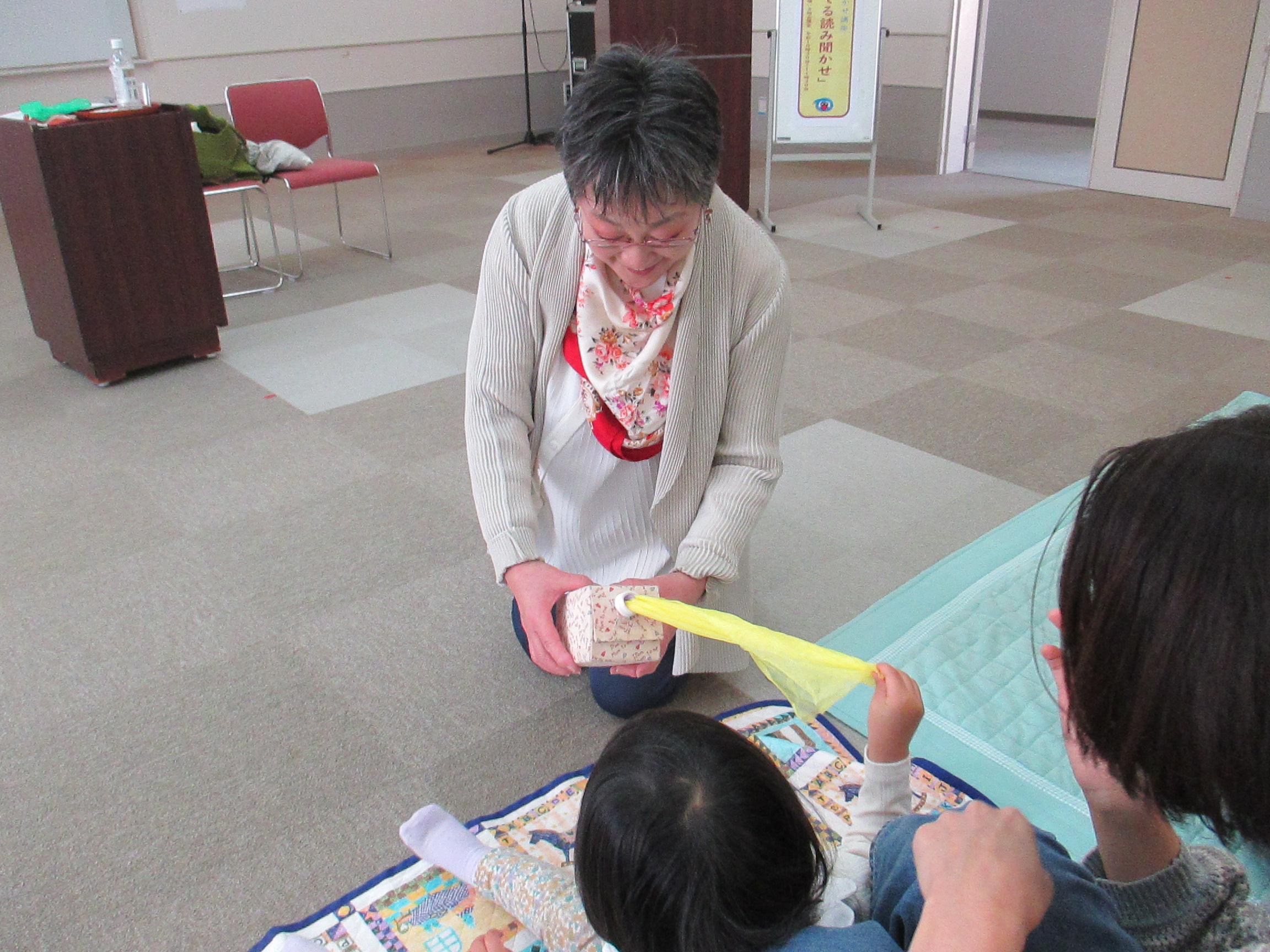 当日は、絵本の読み聞かせのほか、手遊びやわらべうたの実演もあり、宮崎さんの語りと表現の豊かさに、参加者はぐっと引き込まれていました。
