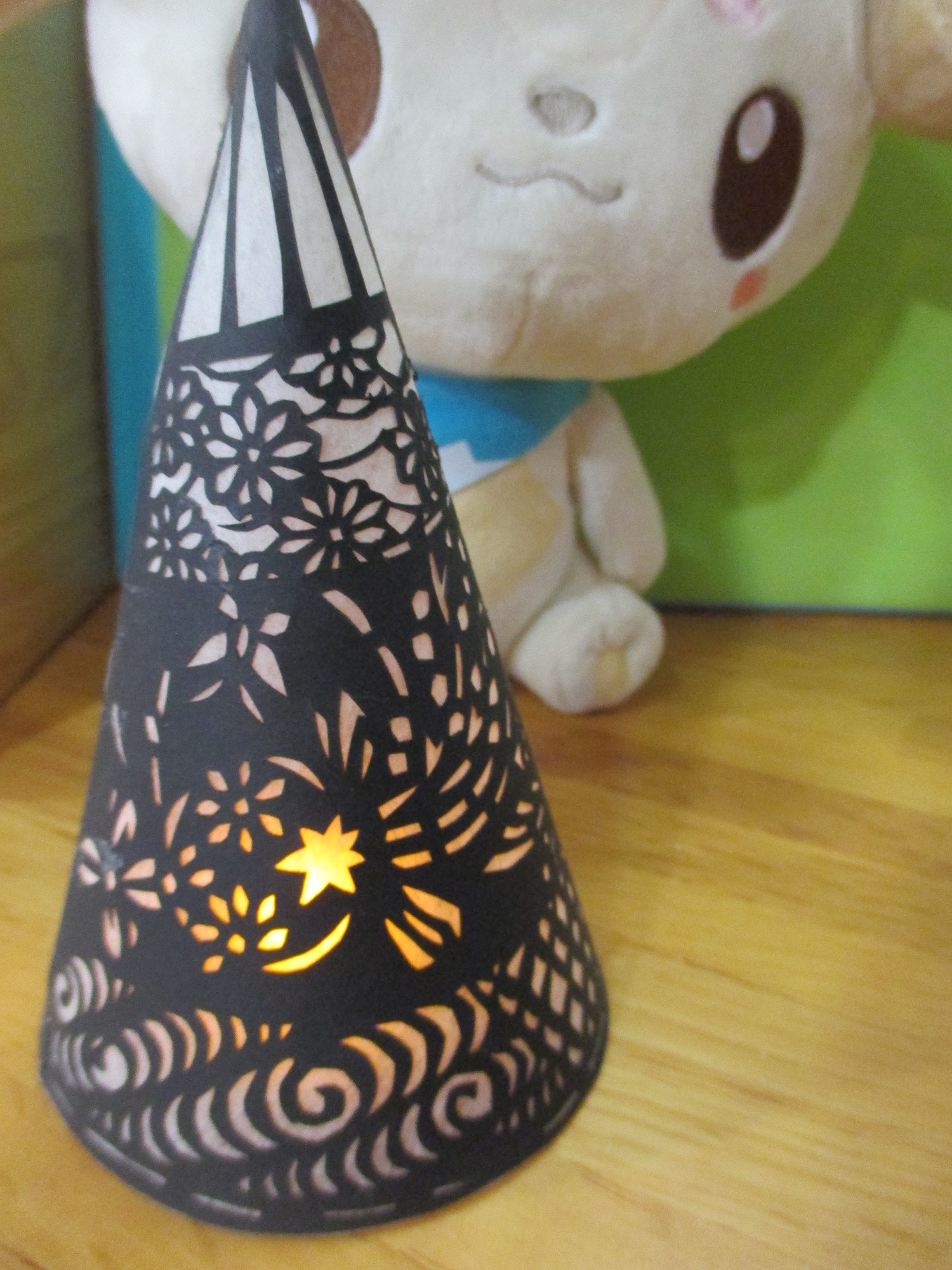 今回の作家は町内うどん屋さん店主。切り絵を始めて5年、作りためた作品の中から人物画を中心に選びました。行灯に仕立てた作品はバリエーションいろいろ。明るい館内なので本来の行灯らしさはお伝えしきれず残念なのですが、雰囲気ある世界をぜひお楽しみください♪5月28日(木)まで